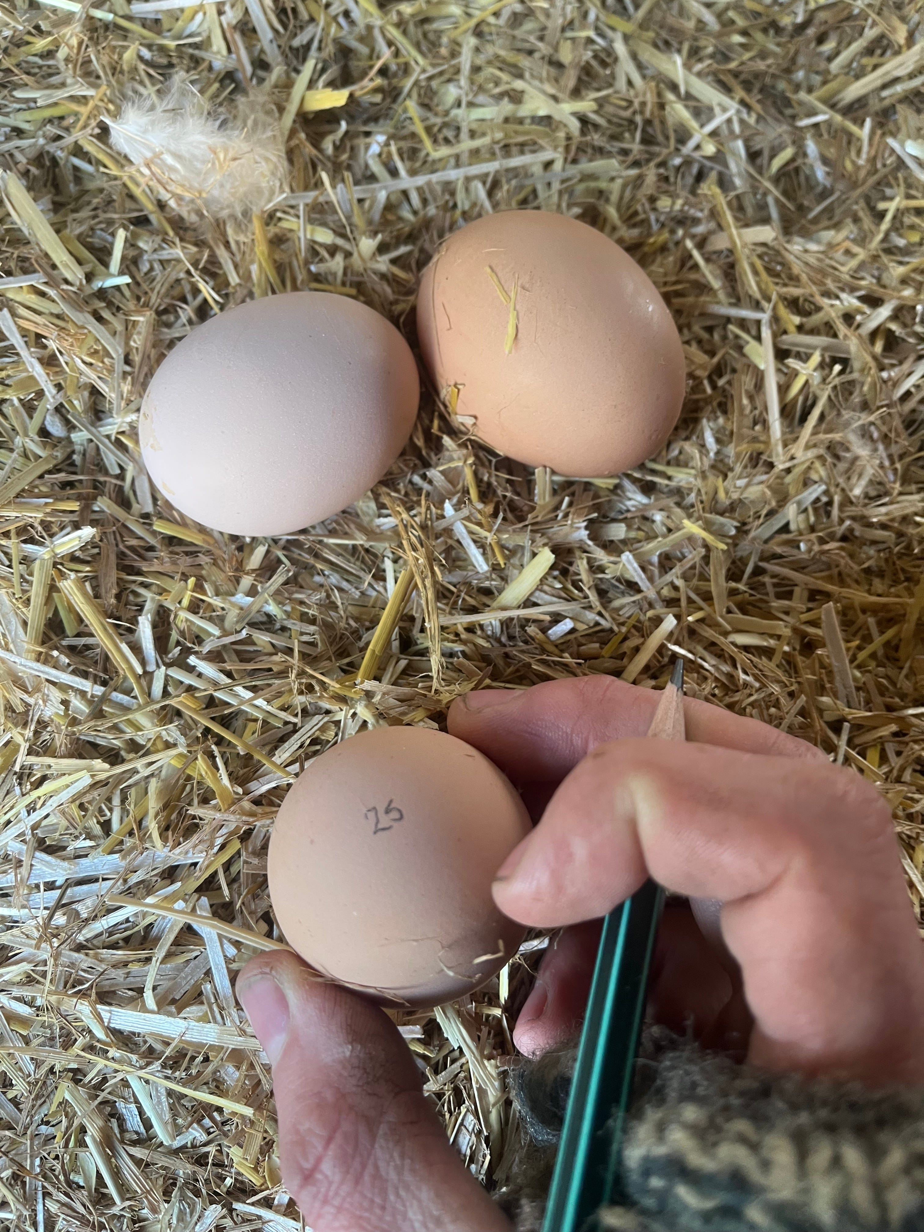 It is incredible to witness a sitting hens huge dropping of guano, a great steaming pat of brown and white dolloped down as soon as her legs begin to walk after she is lifted off her nest, signalling that a toilet break can be permitted.